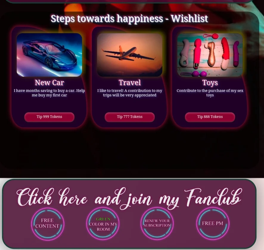 Doppia Penetrazione, Giocattoli anali, Giocattoli erotici, Pompino, Giocattoli per capezzoli, Nylon, Ahegao, Anale, Sculacciate, Ballo erotico, Zoccolo di cammello, Cosplay, Creampie, Cuoio, Ditalino, Doccia, Spogliarello, Dildo o Vibratore, Linguaggio esplicito, Feticismo dei piedi, Giochi di ruolo, Pecorina, Donna sopra, Yoga, Twerk, Topless, Tacchi, Squirt, Spettacolo con olio, Hardcore, Orgasmo, Posizione 69, Masturbazione, Gagging, Tittyfuck